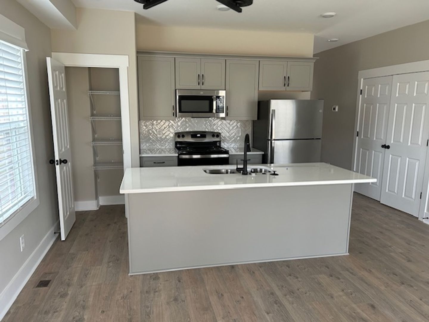 4 BEDROOM, 3 BATH WITH ONE CAR GARAGE. Brand new construction with stainless appliances, washer & dryer, 1 bdrm downstairs with a full bath, luxury vinyl flooring downstairs, carpet in the bedrooms and on the stairs. Covered deck. Garage has an electric opener. Concrete drive