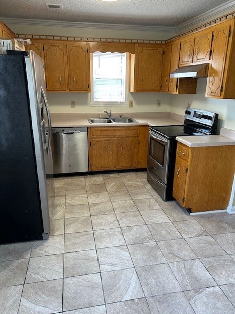 3 bedroom, 1 bath, range, refrigerator, dishwasher, central air & heat, w/d conn, patio, fenced in backyard, located off Stateline Road, no pets
