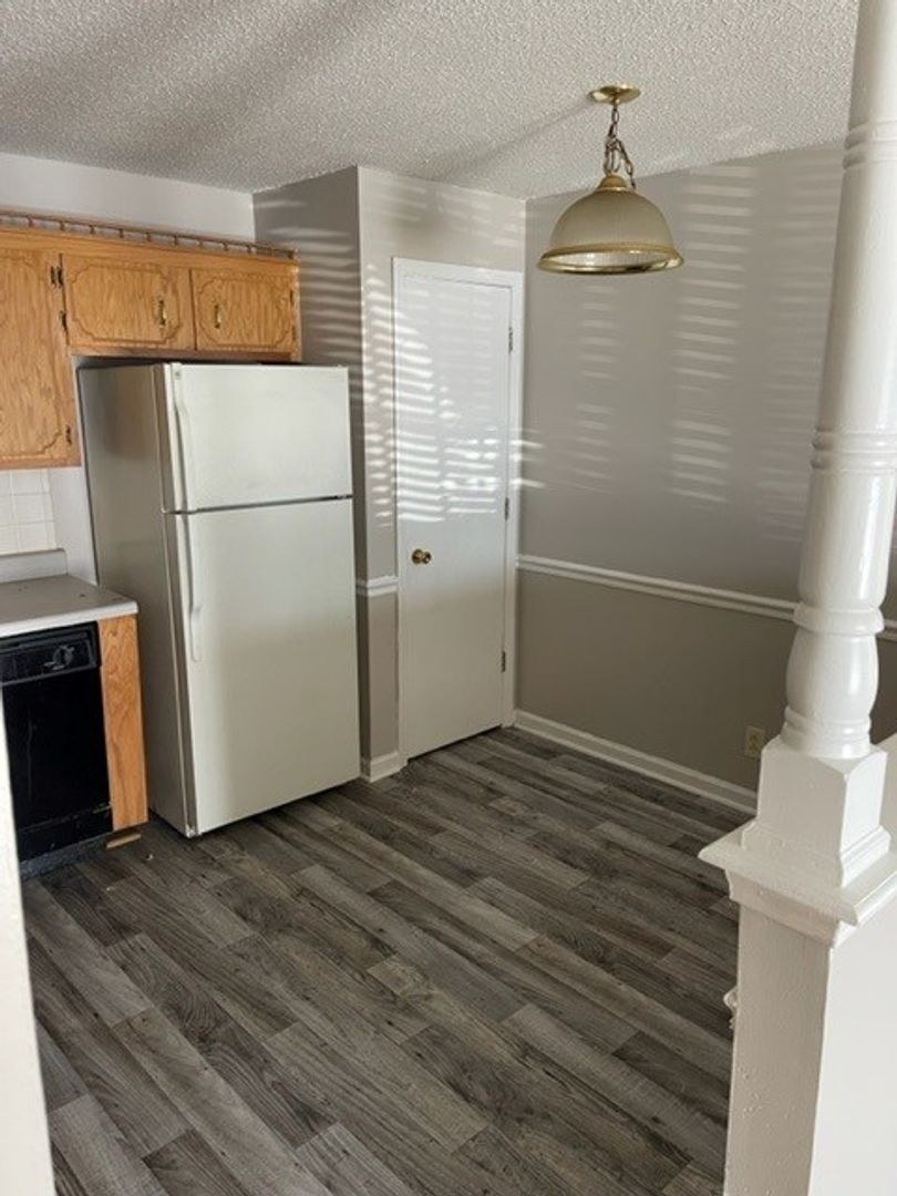 2 BR, 1 BATH, stove, refrigerator, dishwasher, central heat & air, mature pet under 25lbs allowed with $300 NONREFUNDABLE pet fee per pet plus an additional $25 per month per pet. On combo lock.